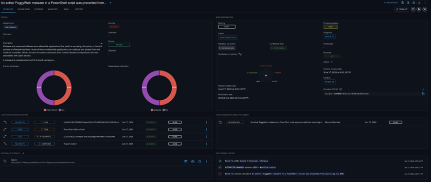 答えはもちろん「イエス」です!OpenCTIは、インシデント対応計画の策定段階で価値のある情報を提供するだけでなく、危機的かつ緊迫したインシデント発生時にはインシデント対応者を導く指針としても機能します。インシデント対応者は、やみくもにもがかずとも、攻撃の背後にいる人物、彼らの手口、そして狙いを速やかに特定できます。