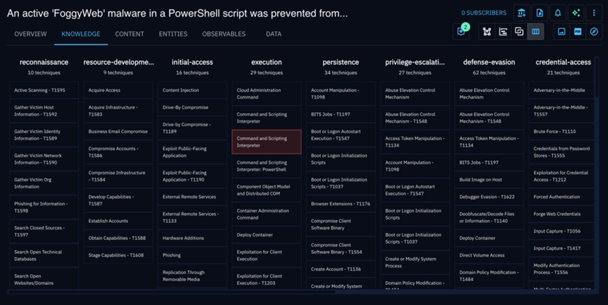 このビューでは、攻撃手法を下の図のような戦術フレームワークに落とし込み、該当する部分を強調表示します。