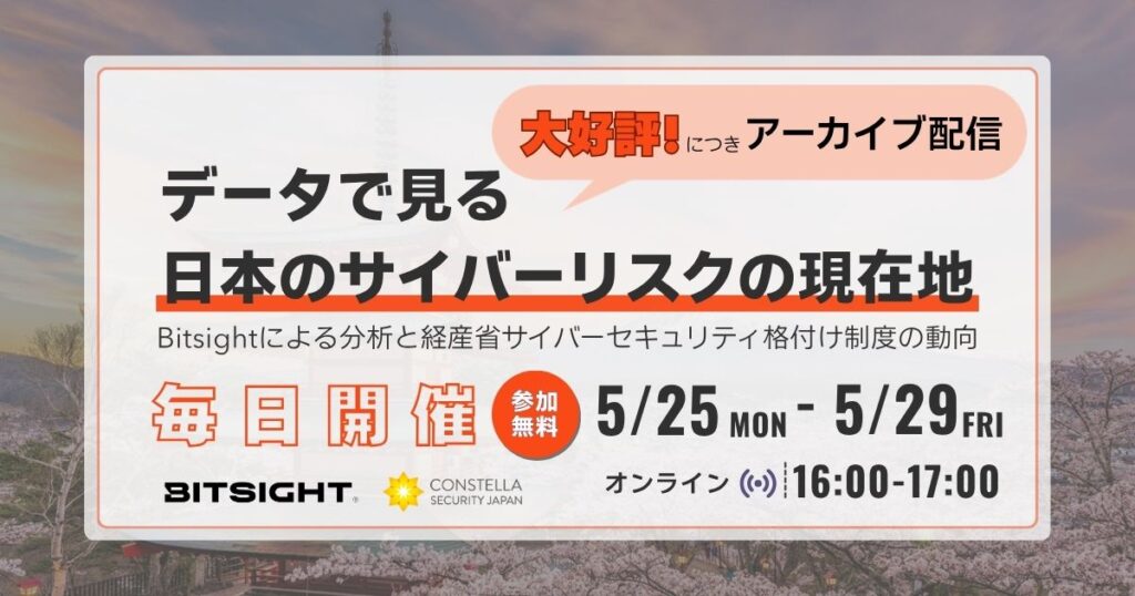 本ウェビナーでは、Bitsightが保有するセキュリティデータをもとに、日本企業のサイバーリスクの現在地を読み解くとともに、経済産業省が推進するサイバーセキュリティ格付け制度の動向について解説します。