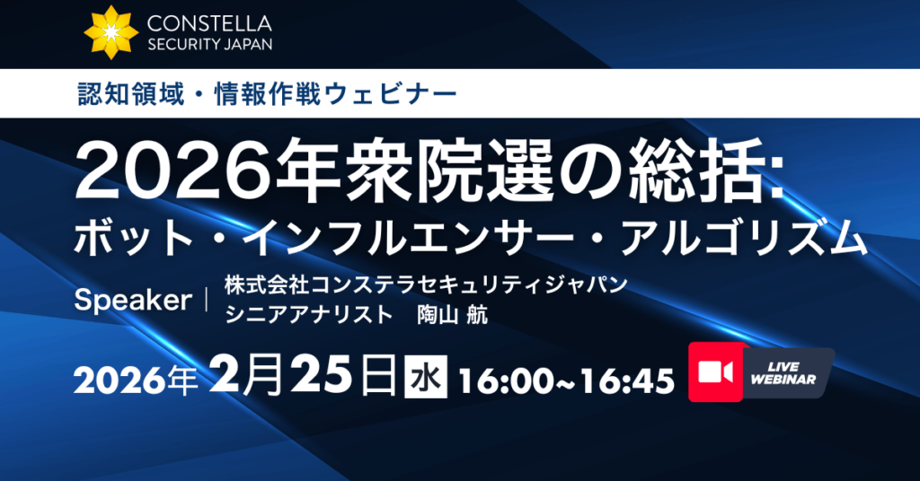 | 16:05-16:35 | 2026年衆院選の総括:ボット・インフルエンサー・アルゴリズム株式会社コンステラセキュリティジャパン |